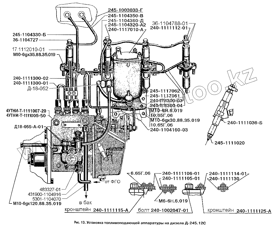 Каталог запасных частей к технике: ЗИЛ-3250. Установка топливоподающей аппаратуры на дизеле Д-245.12С