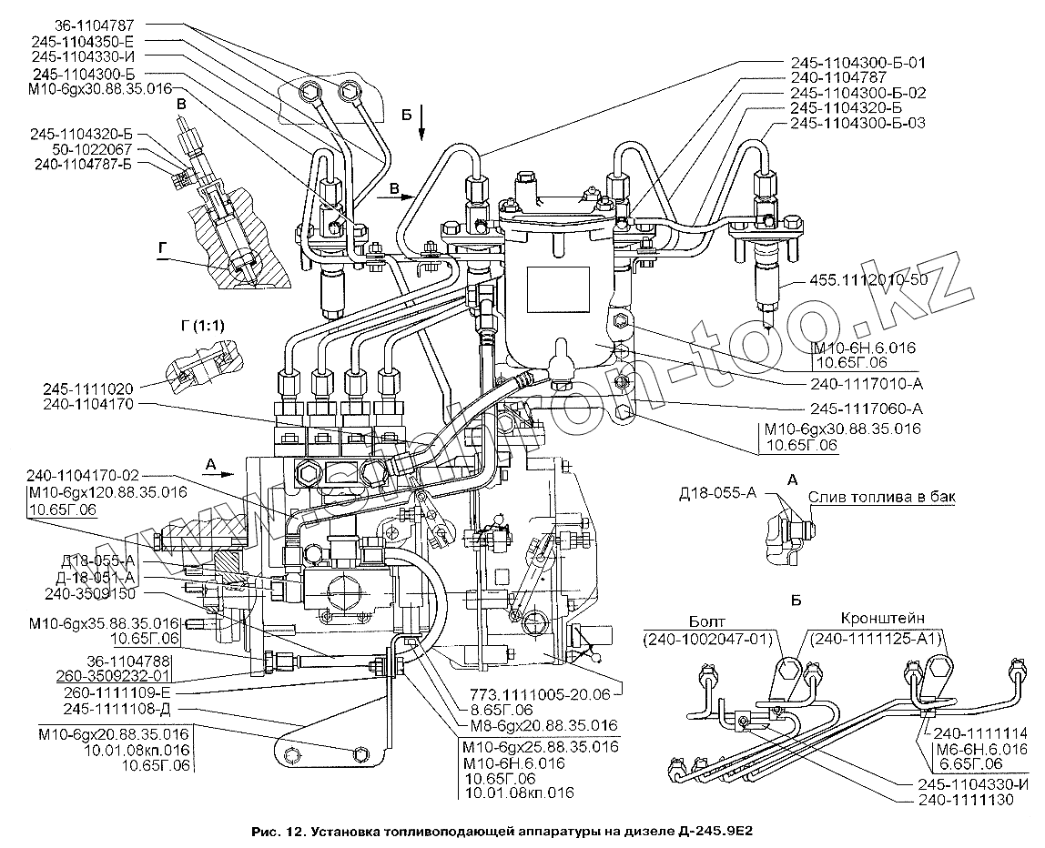 Каталог запасных частей к технике: ЗИЛ-3250. Установка топливоподающей аппаратуры на дизеле Д-245.9Е2