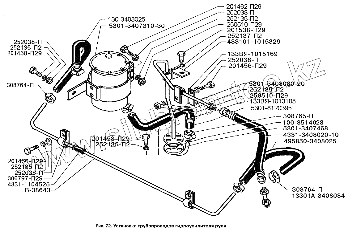 Каталог запасных частей к технике: ЗИЛ-3250. Установка трубопроводов гидроусилителя руля