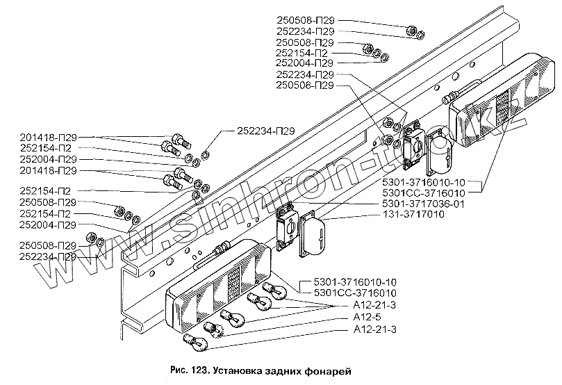 Каталог запасных частей к технике: ЗИЛ-3250. Установка задних фонарей