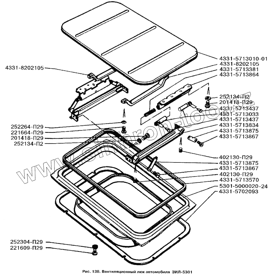 Каталог запасных частей к технике: ЗИЛ-3250. Вентиляционный люк автомобиля ЗИЛ-5301