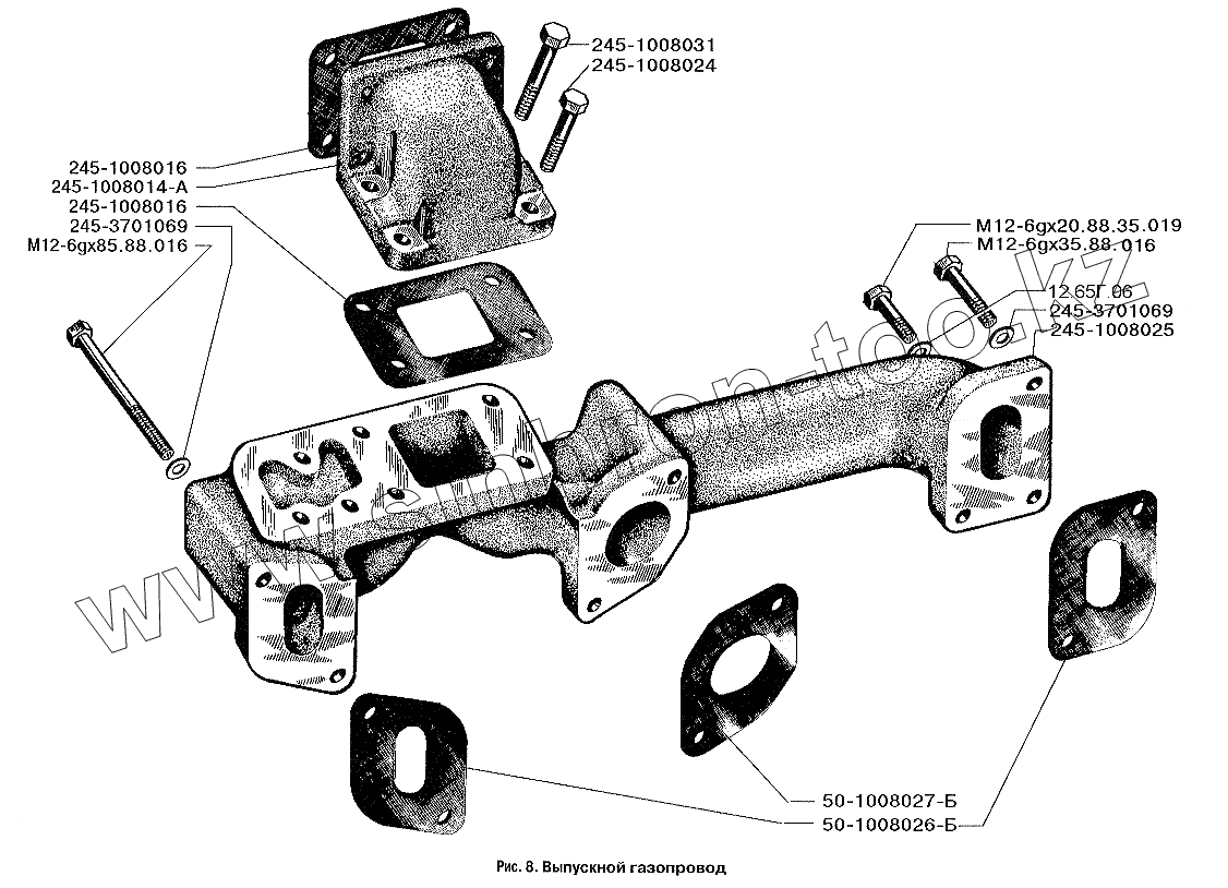 Каталог запасных частей к технике: ЗИЛ-3250. Выпускной газопровод