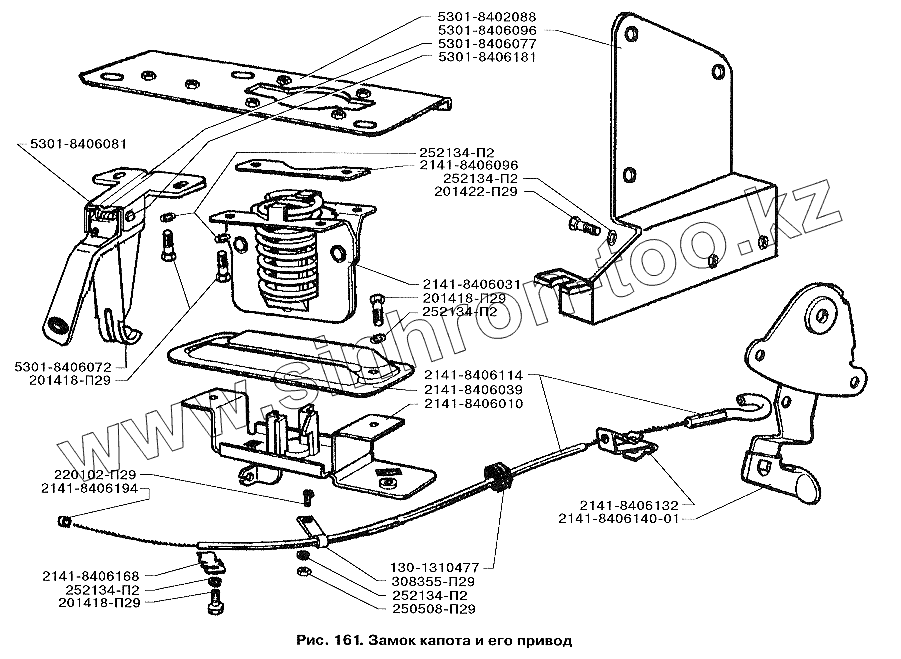 Каталог запасных частей к технике: ЗИЛ-3250. Замок капота и его привод