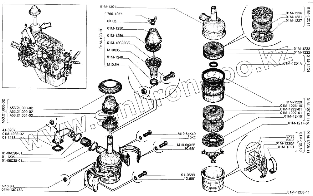 | 01М-12С4 | 01М-12С4 | Корпус воздухоочистителя с головкой | |