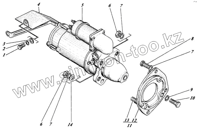Каталог запасных частей к технике: Алтайдизель Д-442. Стартер с проставкой 41С-19с1-1