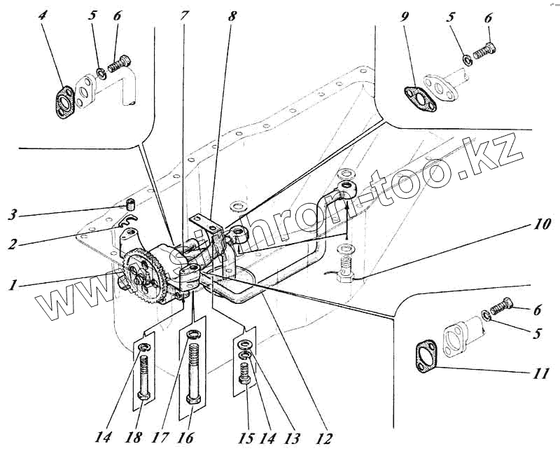 Каталог запасных частей к технике: Алтайдизель Д-442И. Насос масляный с трубами МН41-09с1