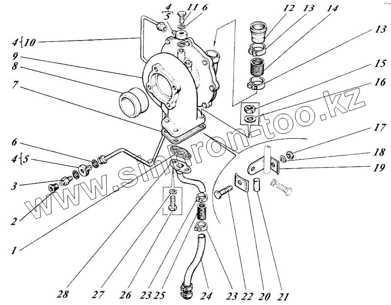 Каталог запасных частей к технике: Алтайдизель Д-442И. Система турбонаддува 442-59-18с1