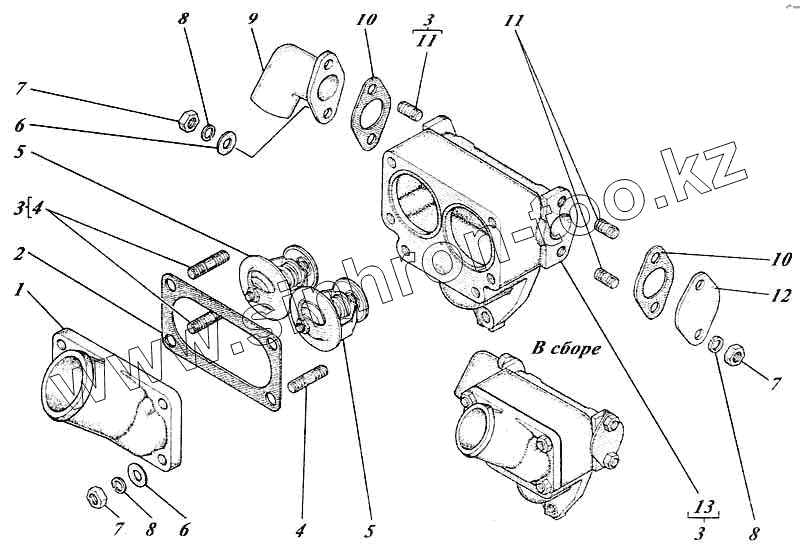 Каталог запасных частей к технике: Алтайдизель Д-442И. Термостатная коробка с термостатами 461-51-13с13