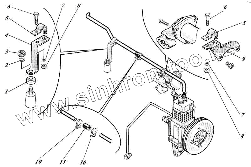 Каталог запасных частей к технике: Алтайдизель Д-442И. Установка компрессора 442-25c1-62