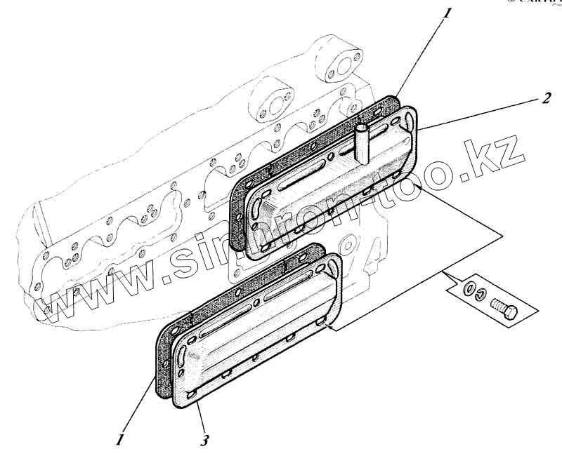 Каталог запасных частей к технике: Алтайдизель Д-442И. Установка крышек боковых