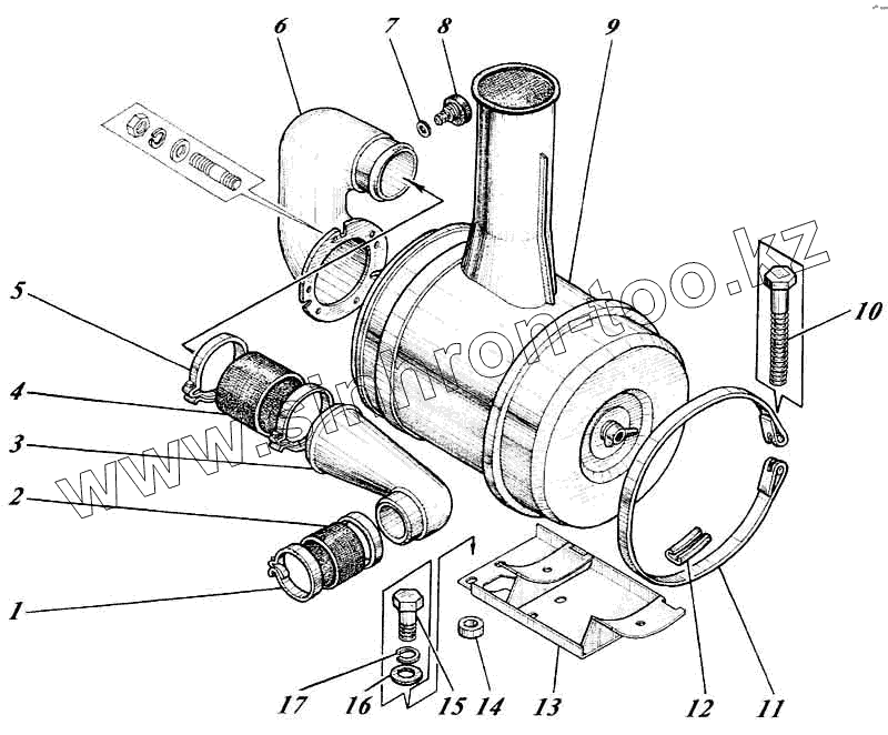Каталог запасных частей к технике: Алтайдизель Д-442И. Установка воздухоочистителя 442-12c1