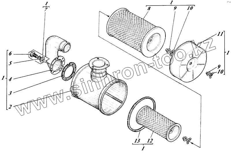 Каталог запасных частей к технике: Алтайдизель Д-442И. Воздухоочиститель с патрубком 442-12с5