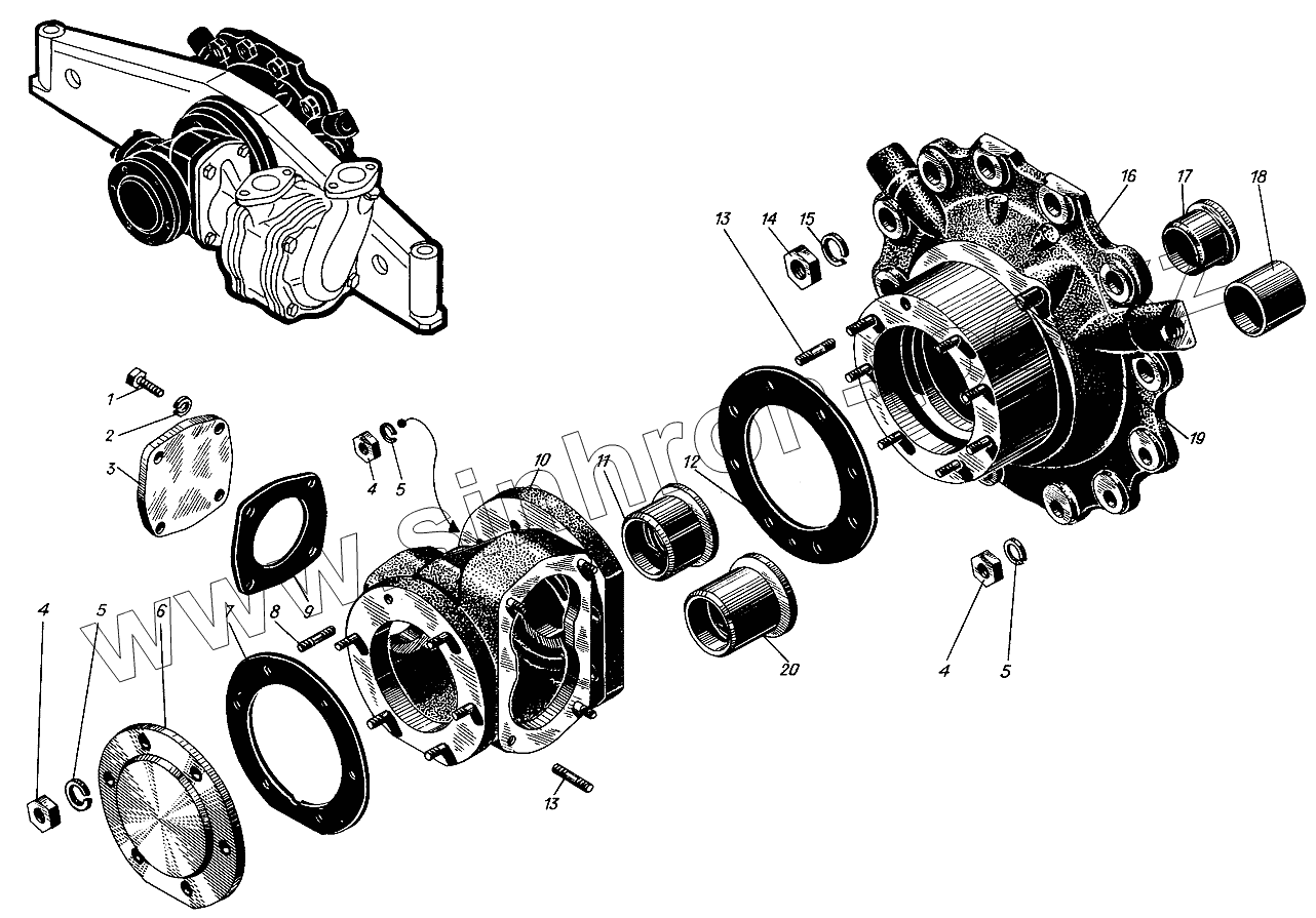 Каталог запасных частей к технике: Барнаултрансмаш Дизели Д12С1. Корпус привода насоса забортной воды