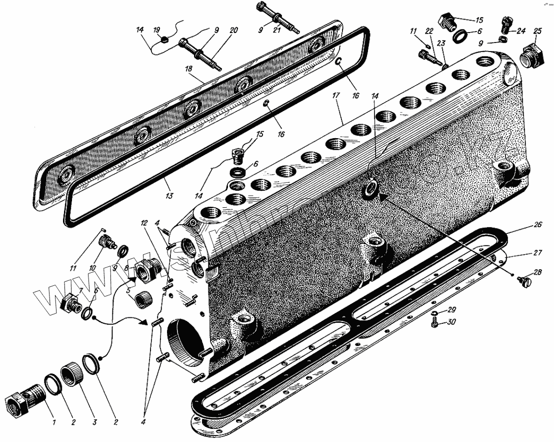 Каталог запасных частей к технике: Барнаултрансмаш Дизели Д12С1. Корпус топливного фильтра