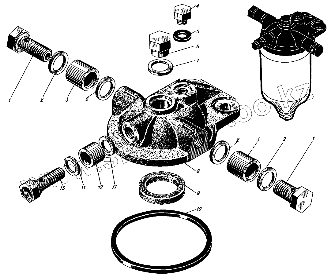 Каталог запасных частей к технике: Барнаултрансмаш Дизели Д12С1. Крышка топливного фильтра