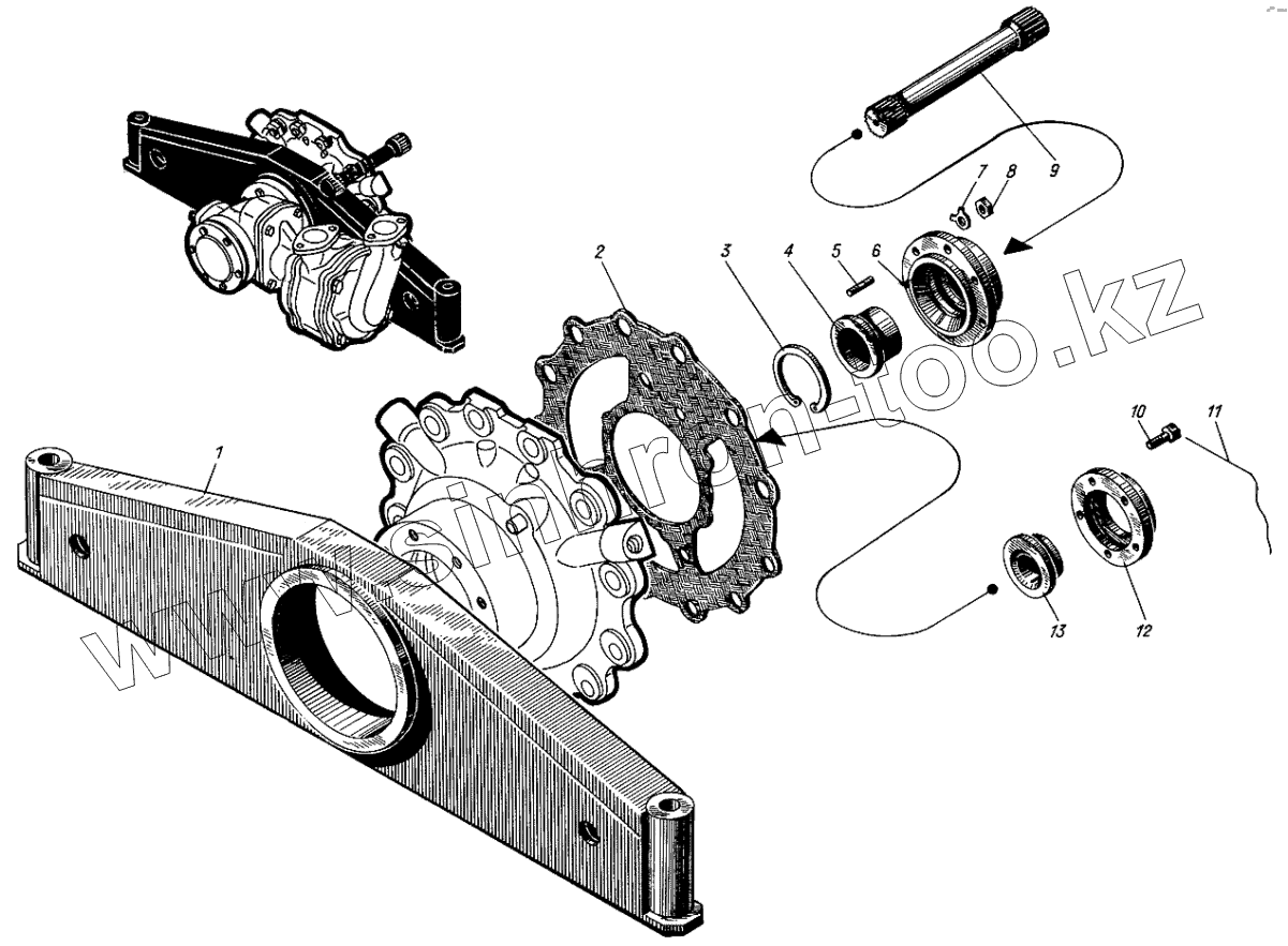 Каталог запасных частей к технике: Барнаултрансмаш Дизели Д12С1. Передняя балка и детали привода насоса
