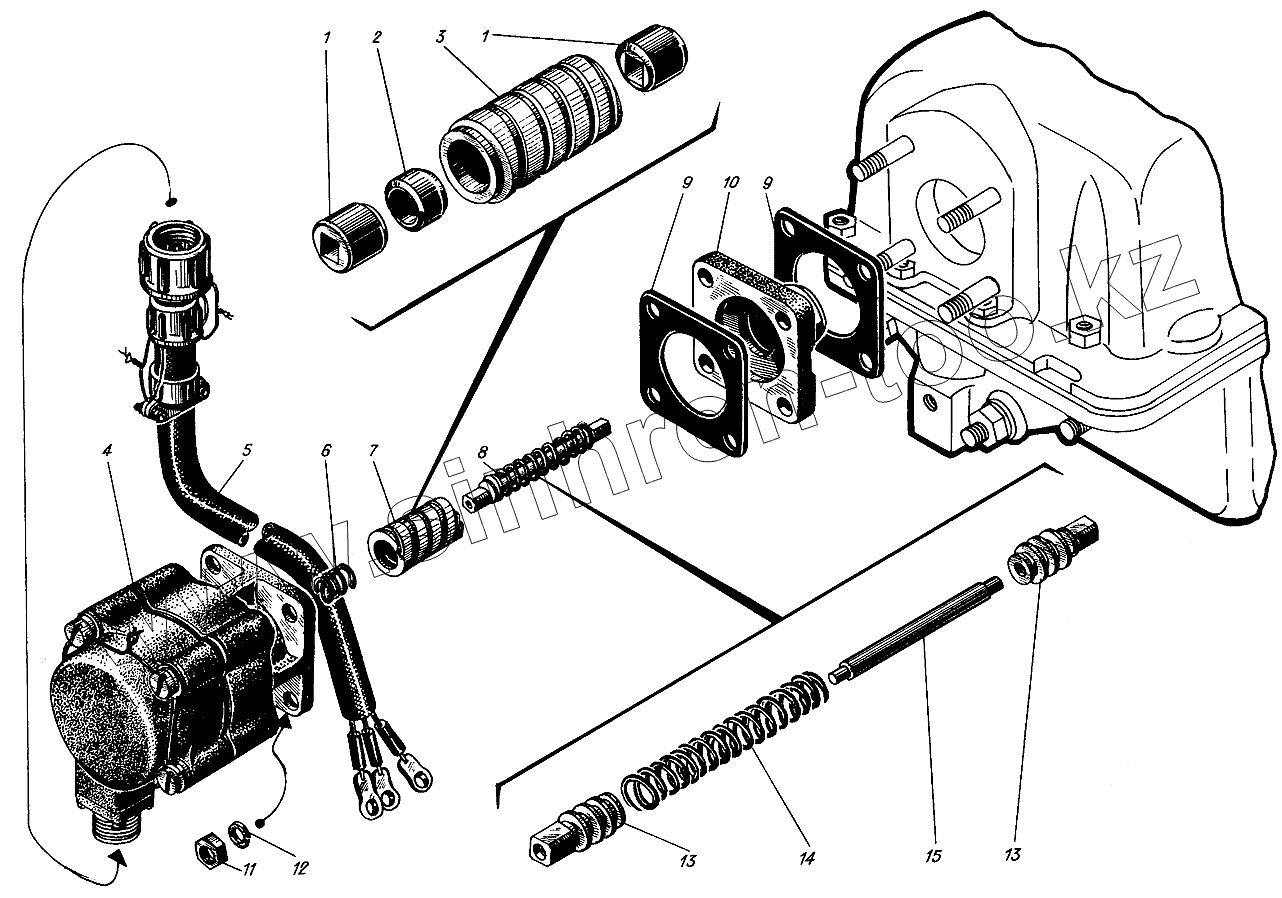 Каталог запасных частей к технике: Барнаултрансмаш Дизели Д12С1. Первичный преобразователь тахометра и детали привода