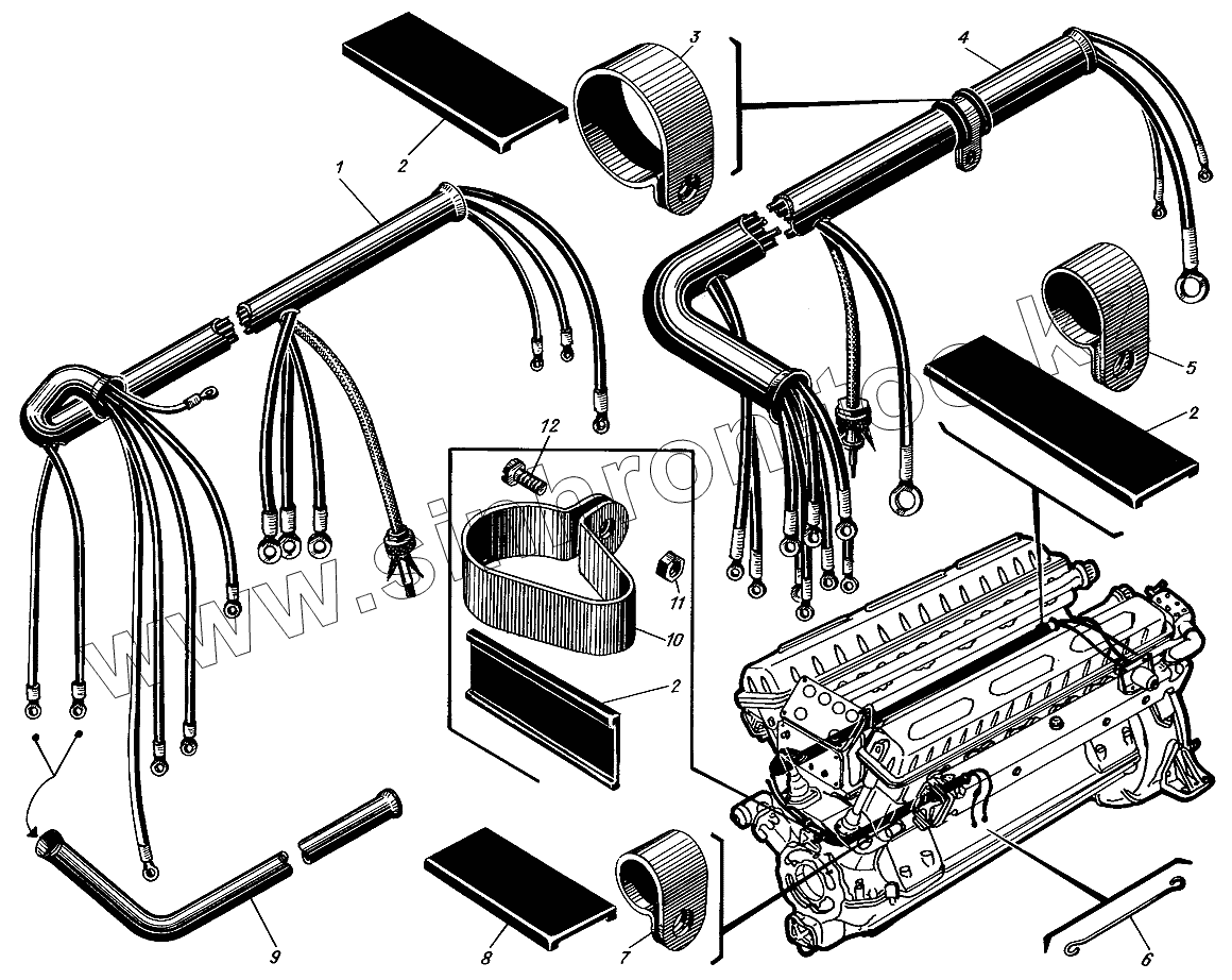 Каталог запасных частей к технике: Барнаултрансмаш Дизели Д12С1. Провода от щитка управления к агрегатам дизеля