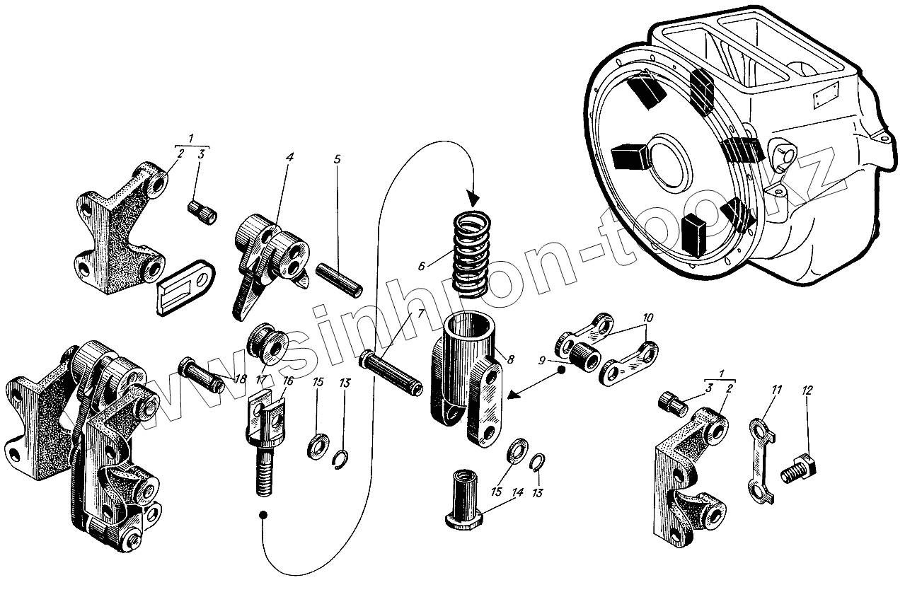 Каталог запасных частей к технике: Барнаултрансмаш Дизели Д12С1. Реверсная муфта. Ролик включения.