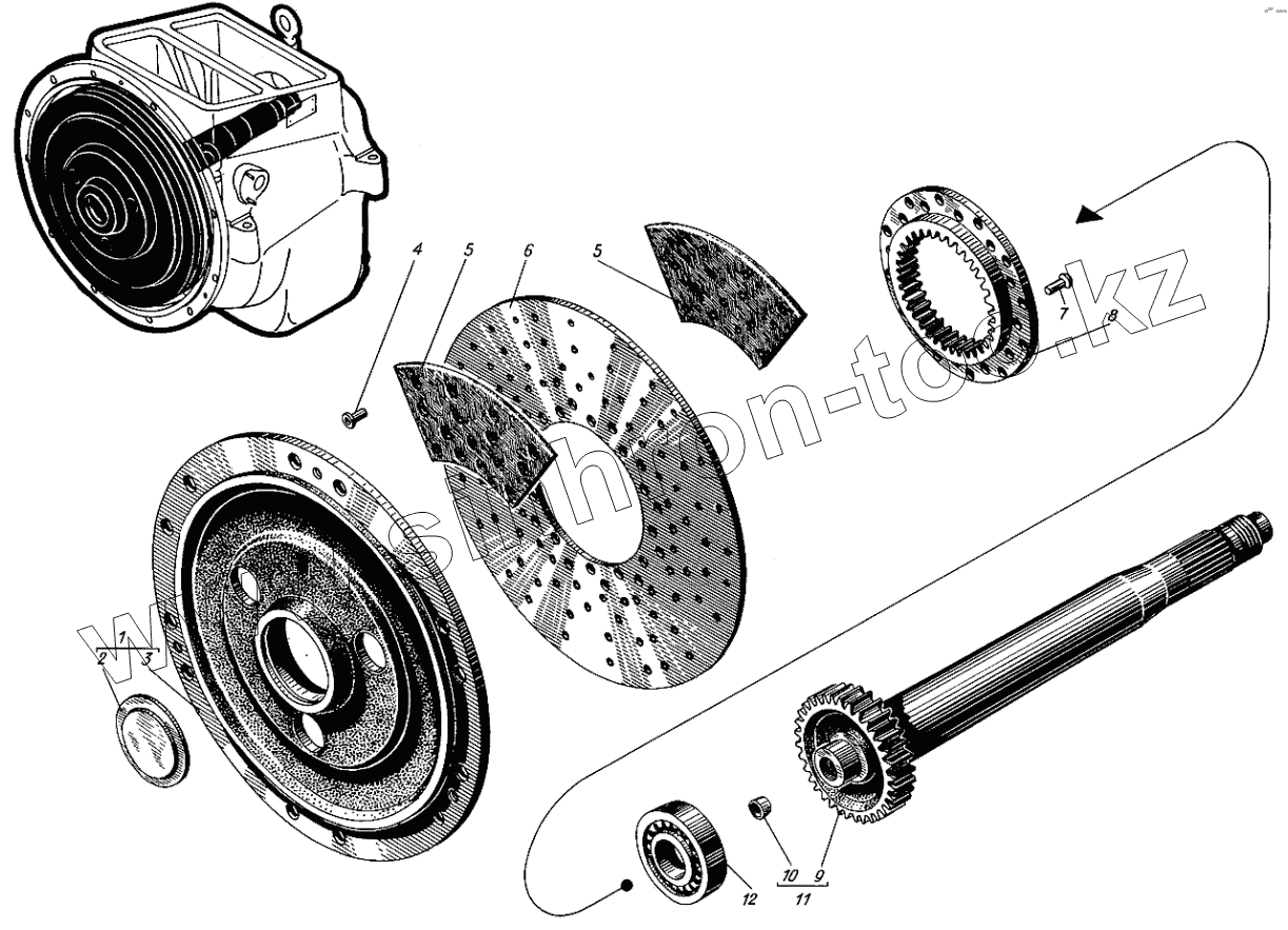 Каталог запасных частей к технике: Барнаултрансмаш Дизели Д12С1. Реверсная муфта. Вал переднего хода.