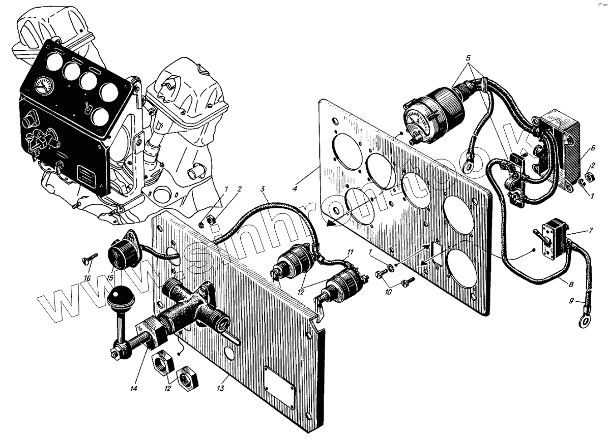 Каталог запасных частей к технике: Барнаултрансмаш Дизели Д12С1. Щиток приборов и щиток управления