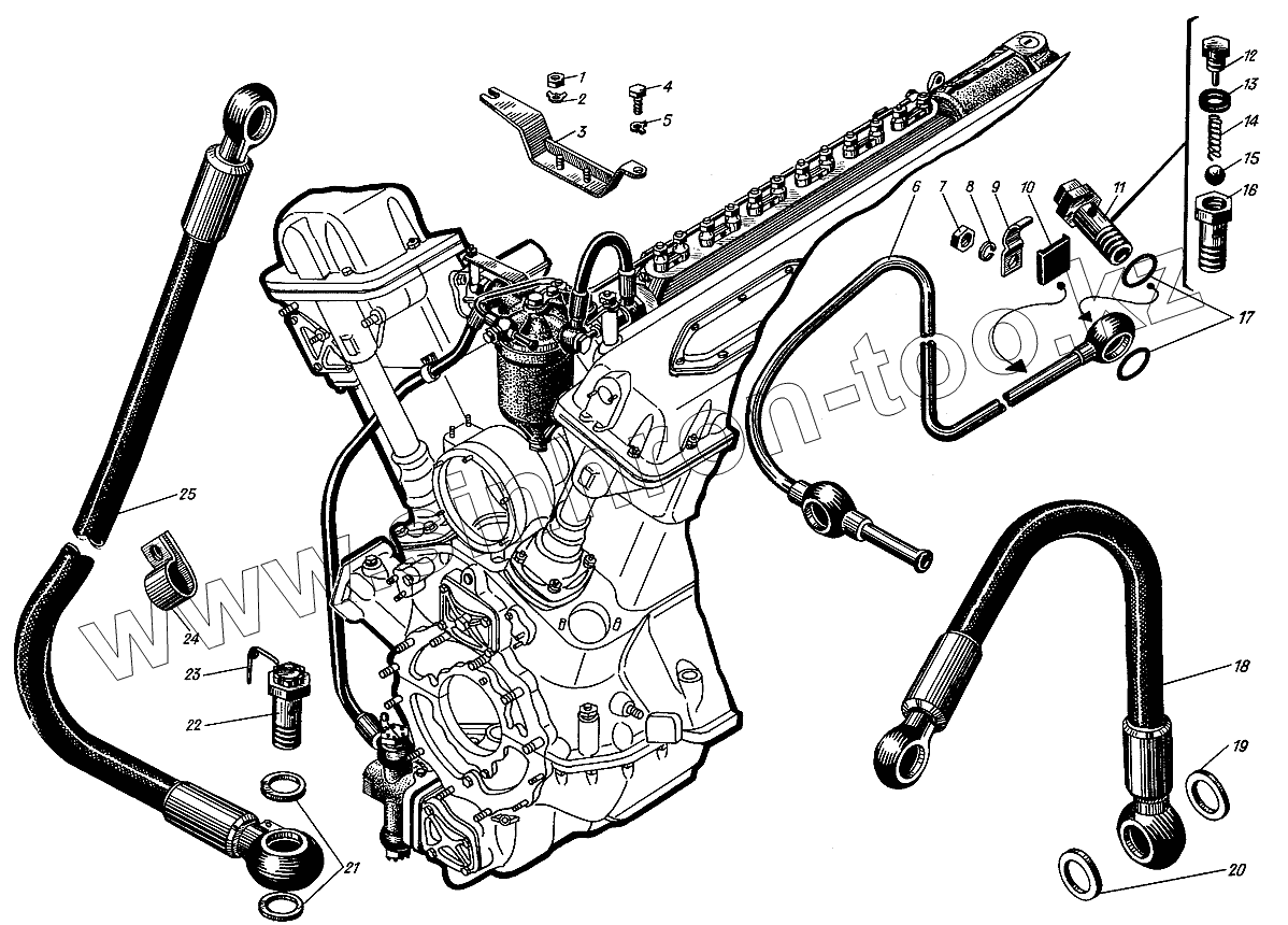 Каталог запасных частей к технике: Барнаултрансмаш Дизели Д12С1. Топливный трубопровод
