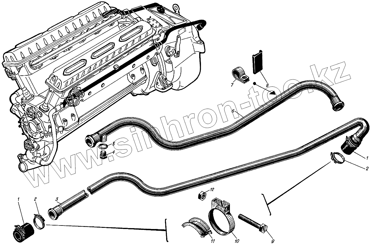 Патрубки правого блока цилиндров