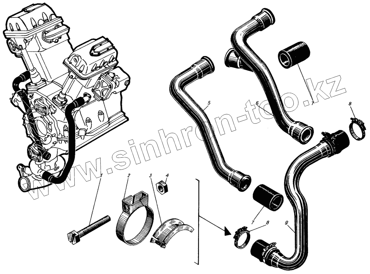 Каталог запасных частей к технике: Барнаултрансмаш Дизели Д12С1. Трубопровод водяной