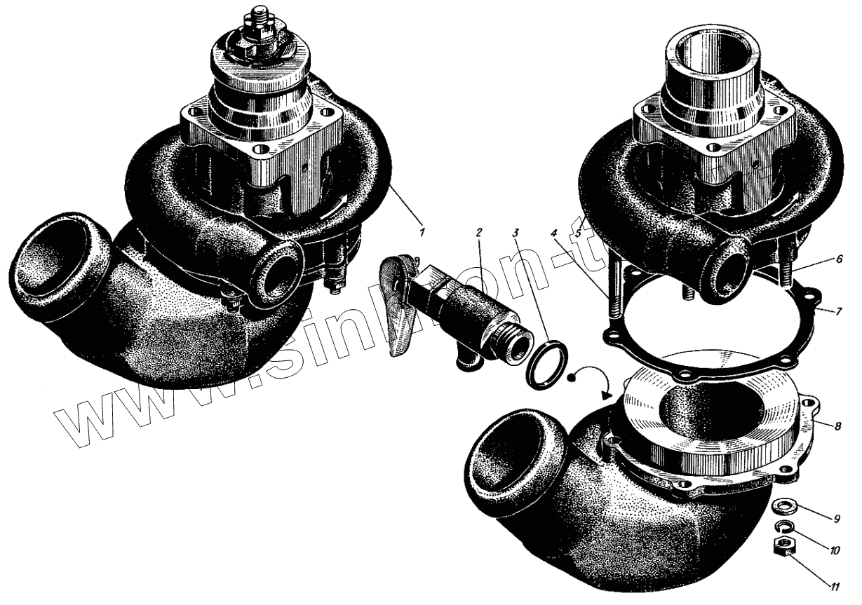 Каталог запасных частей к технике: Барнаултрансмаш Дизели Д12С1. Водяной насос и корпус