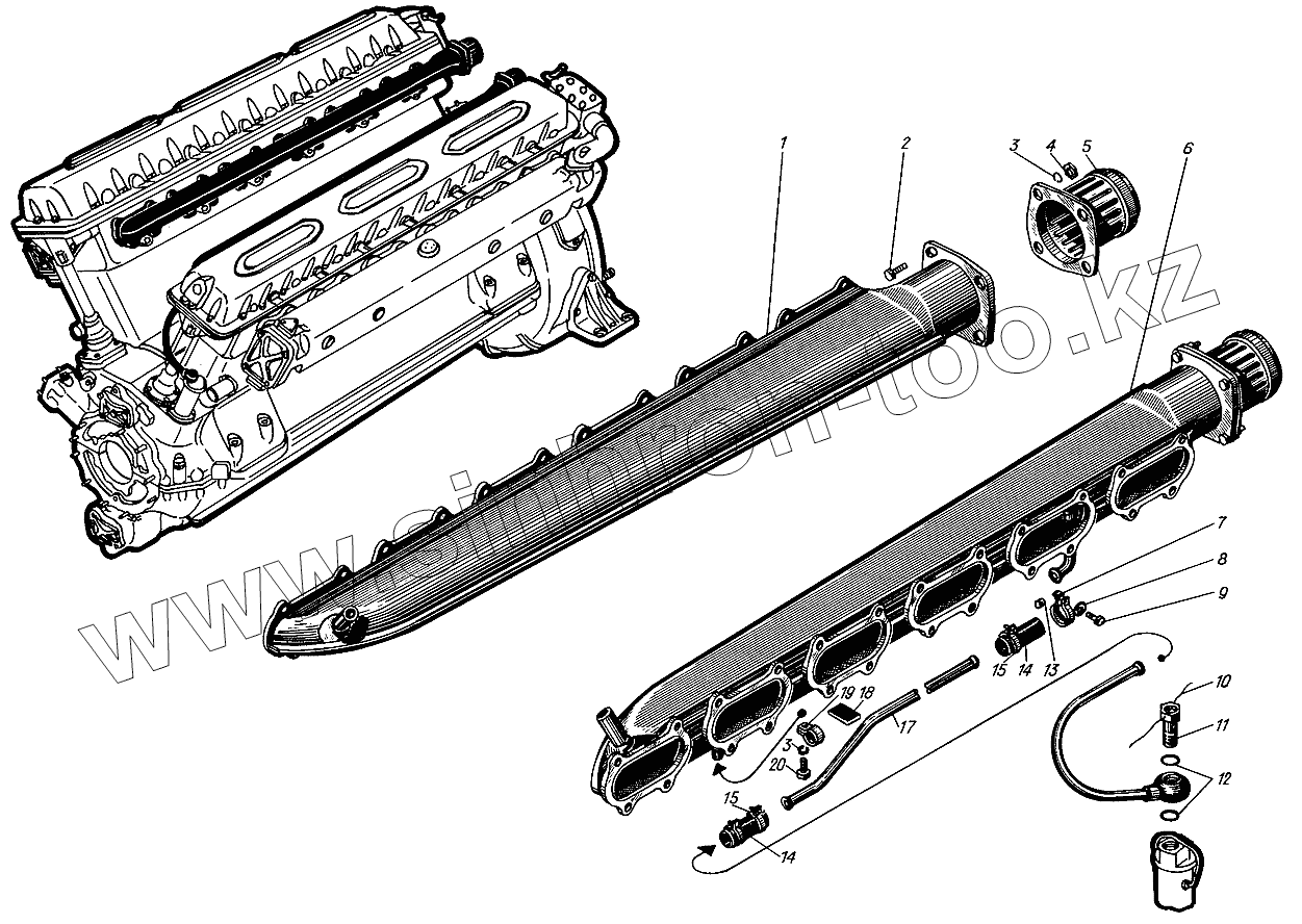 Каталог запасных частей к технике: Барнаултрансмаш Дизели Д12С1. Впускные коллекторы