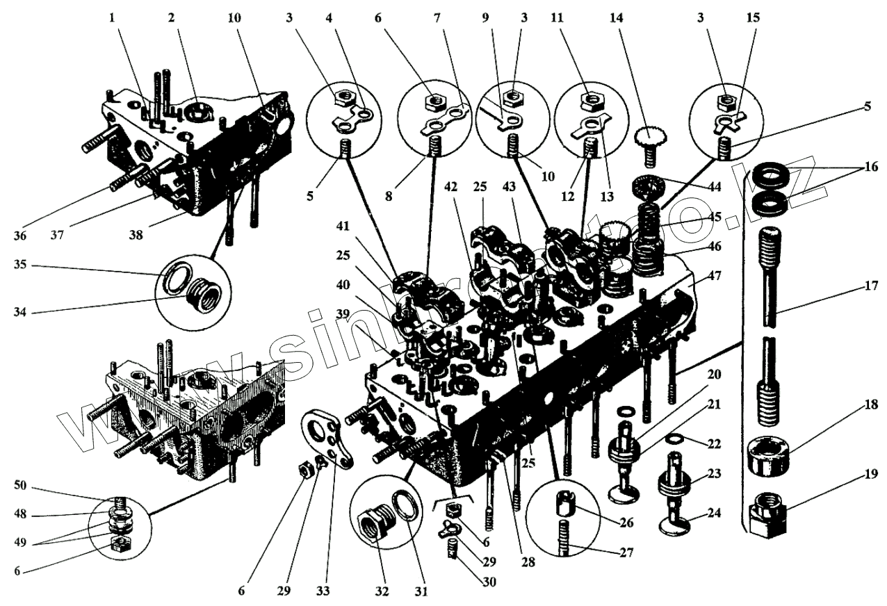 Каталог запасных частей к технике: Барнаултрансмаш Дизели Д12С2. Детали головки блока