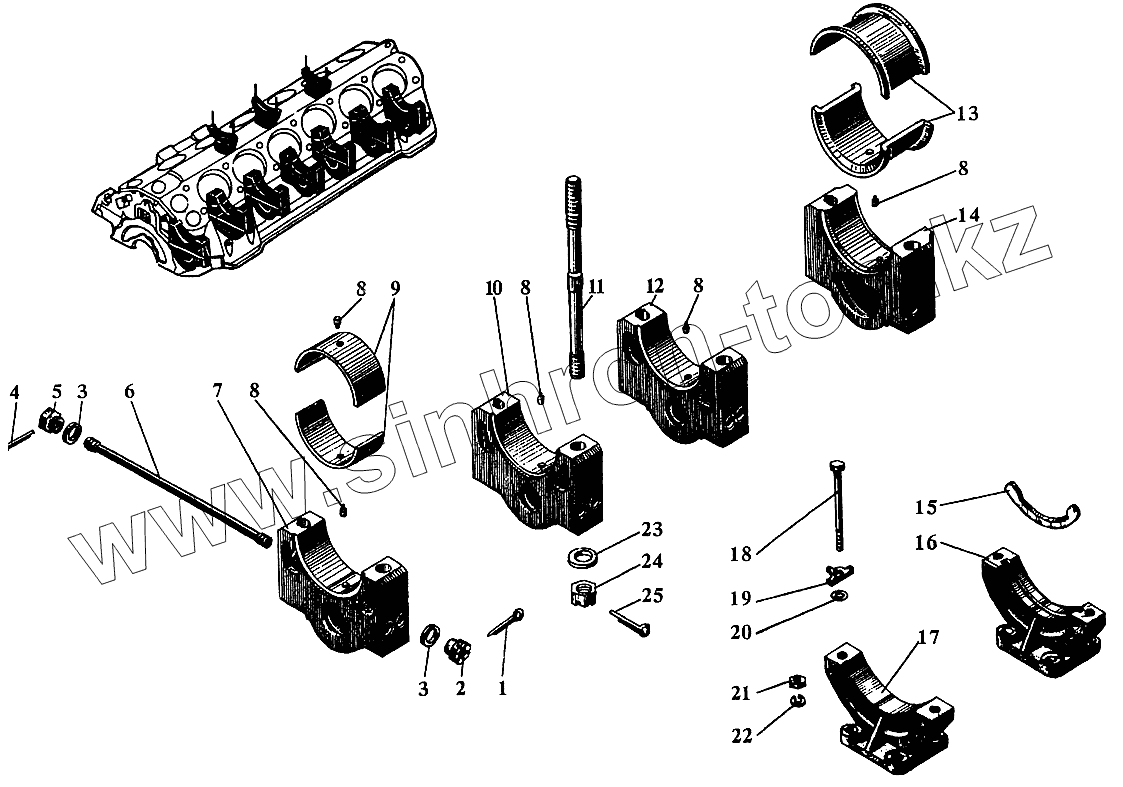 Каталог запасных частей к технике: Барнаултрансмаш Дизели Д12С2. Детали верхнего картера