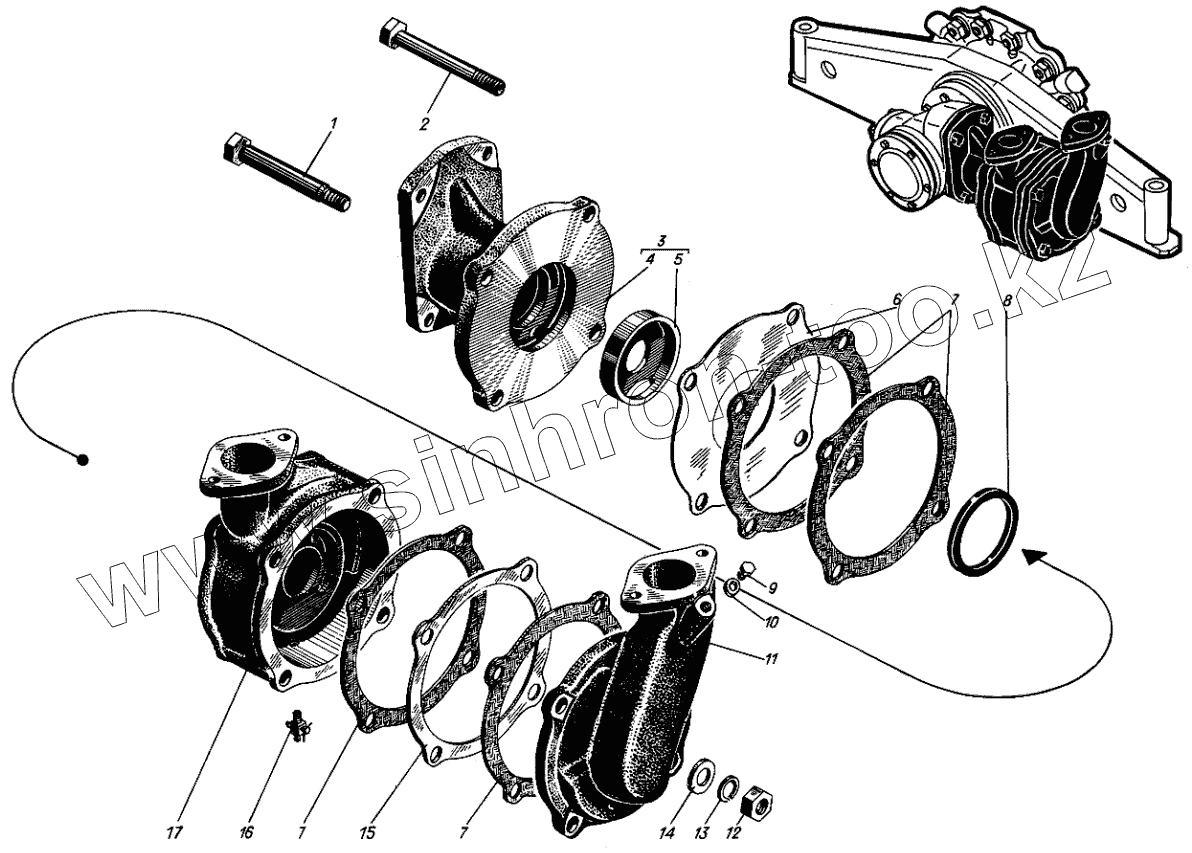 Каталог запасных частей к технике: Барнаултрансмаш Дизели Д6С1. Корпус насоса забортной воды