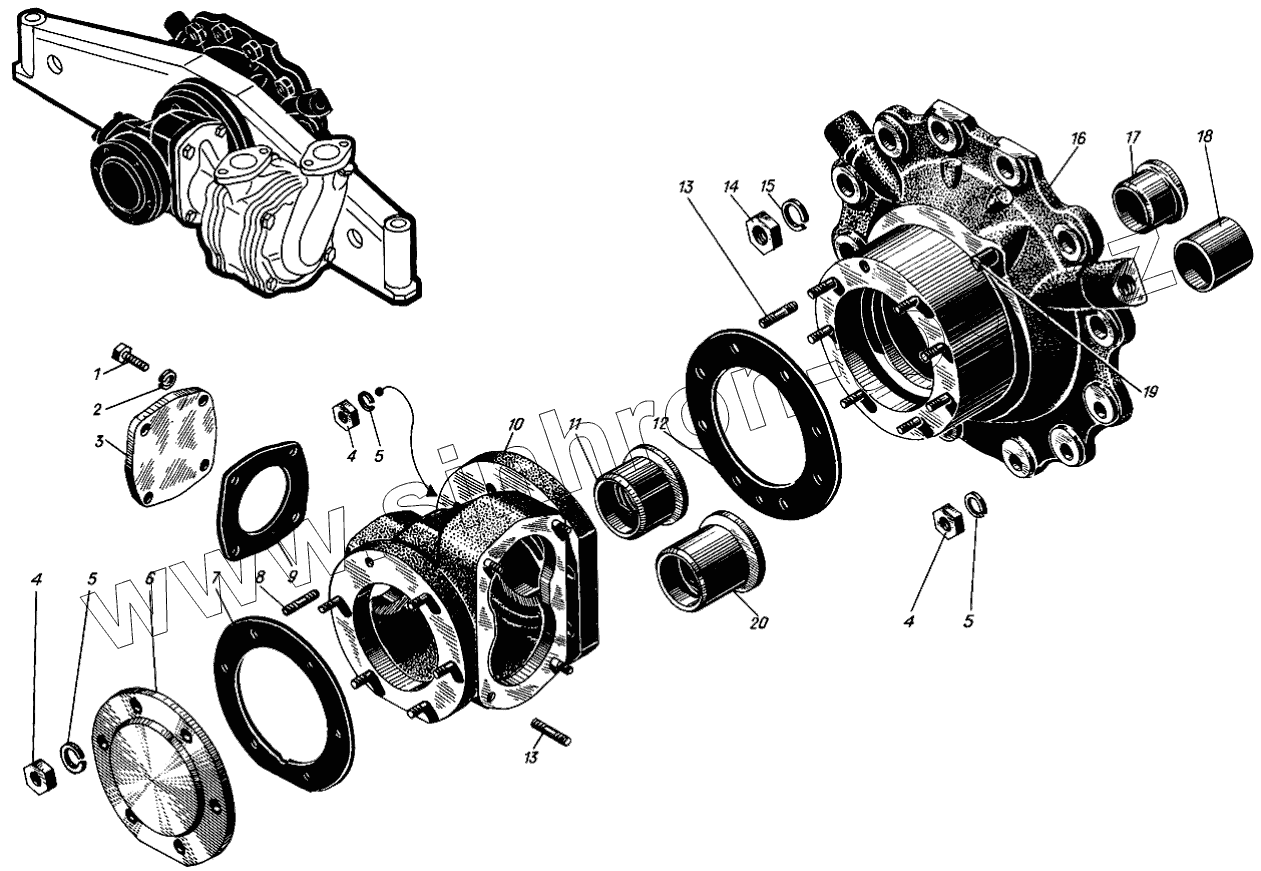 Каталог запасных частей к технике: Барнаултрансмаш Дизели Д6С1. Корпус привода насоса забортной воды