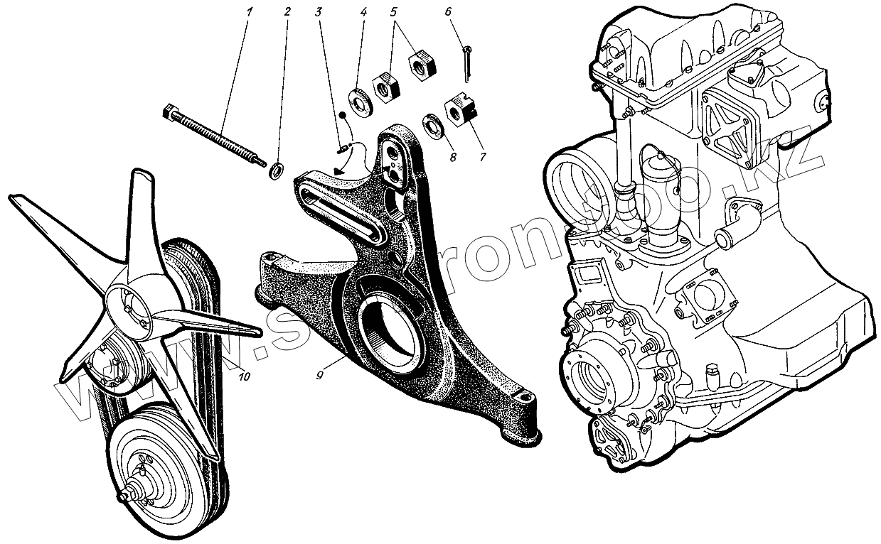 Шкив и крыльчатка вентилятора