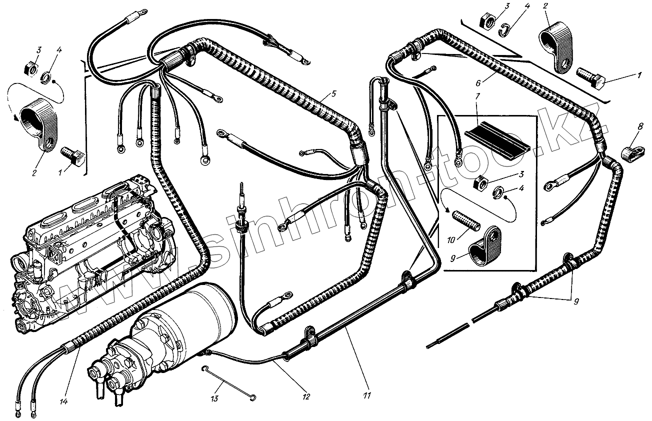 Каталог запасных частей к технике: Барнаултрансмаш Дизели Д6С1. Провода от щитка управления к агрегатам дизеля