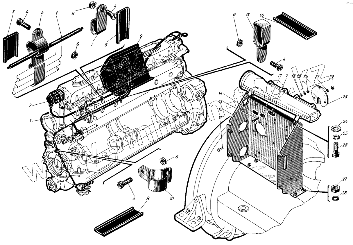 Каталог запасных частей к технике: Барнаултрансмаш Дизели Д6С1. Установка щитка управления дизелем