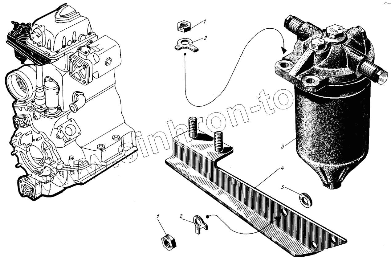 Каталог запасных частей к технике: Барнаултрансмаш Дизели Д6С1. Установка топливного фильтра
