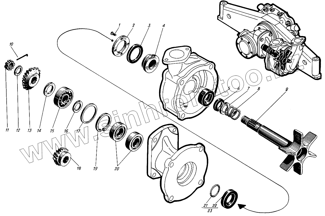 Ведущая шестерня и крышка вала заднего хода
