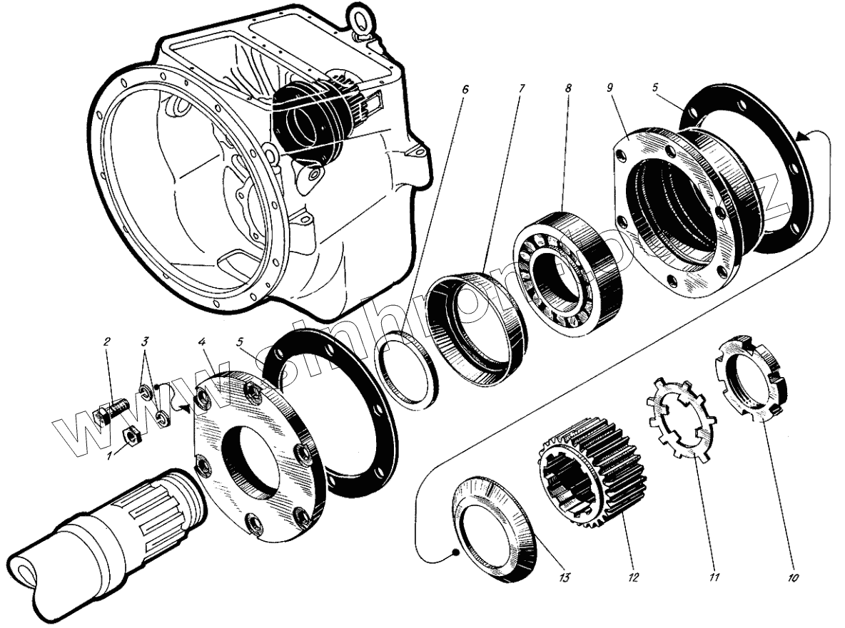 Ведущая шестерня и крышка вала заднего хода
