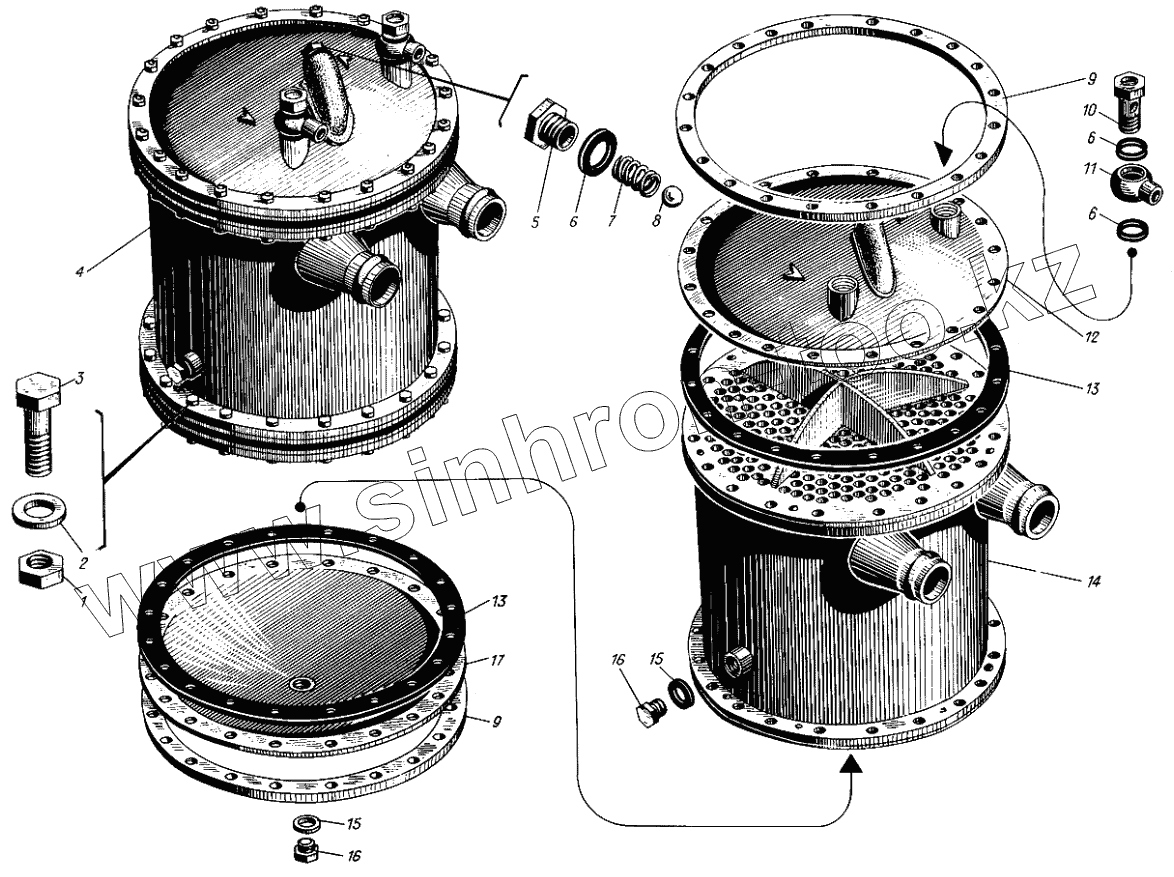 Каталог запасных частей к технике: Барнаултрансмаш Дизели Д6С1. Водомасляный охладитель