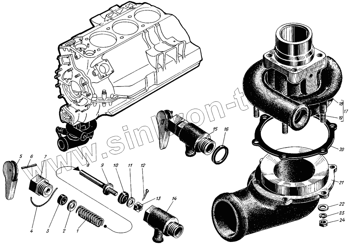 Каталог запасных частей к технике: Барнаултрансмаш Дизели Д6С1. Водяной насос