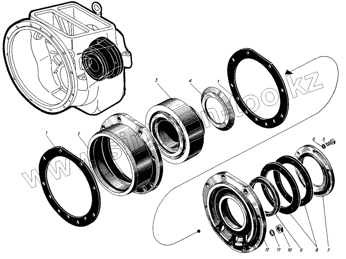 Каталог запасных частей к технике: Барнаултрансмаш Дизели Д6С1. Задняя крышка выходного вала
