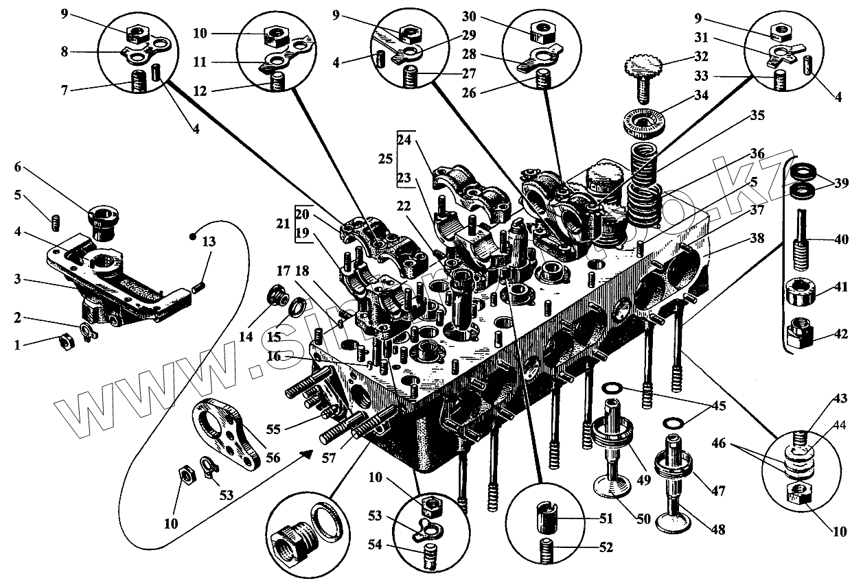 Каталог запасных частей к технике: Барнаултрансмаш Дизели Д6С2. Детали головки блока