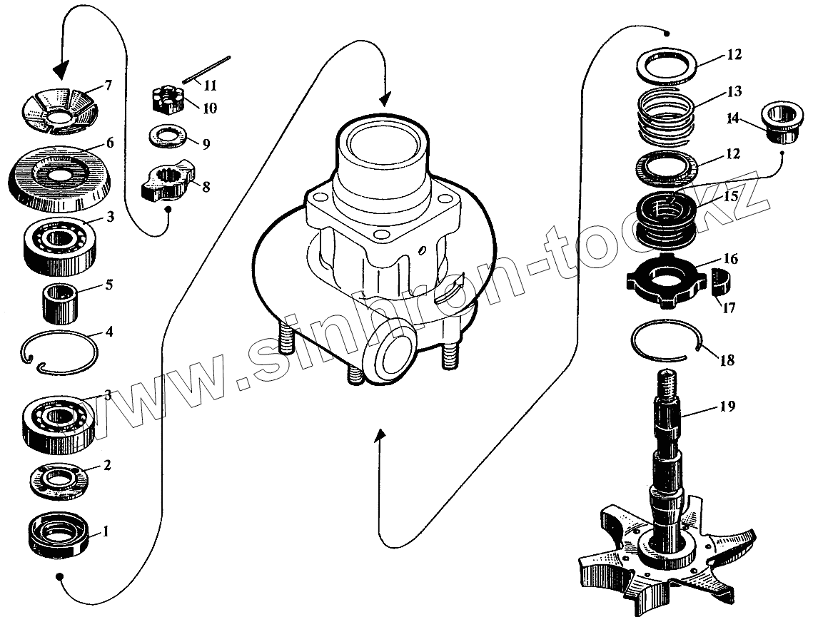 Каталог запасных частей к технике: Барнаултрансмаш Дизели Д6С2. Детали водяного насоса