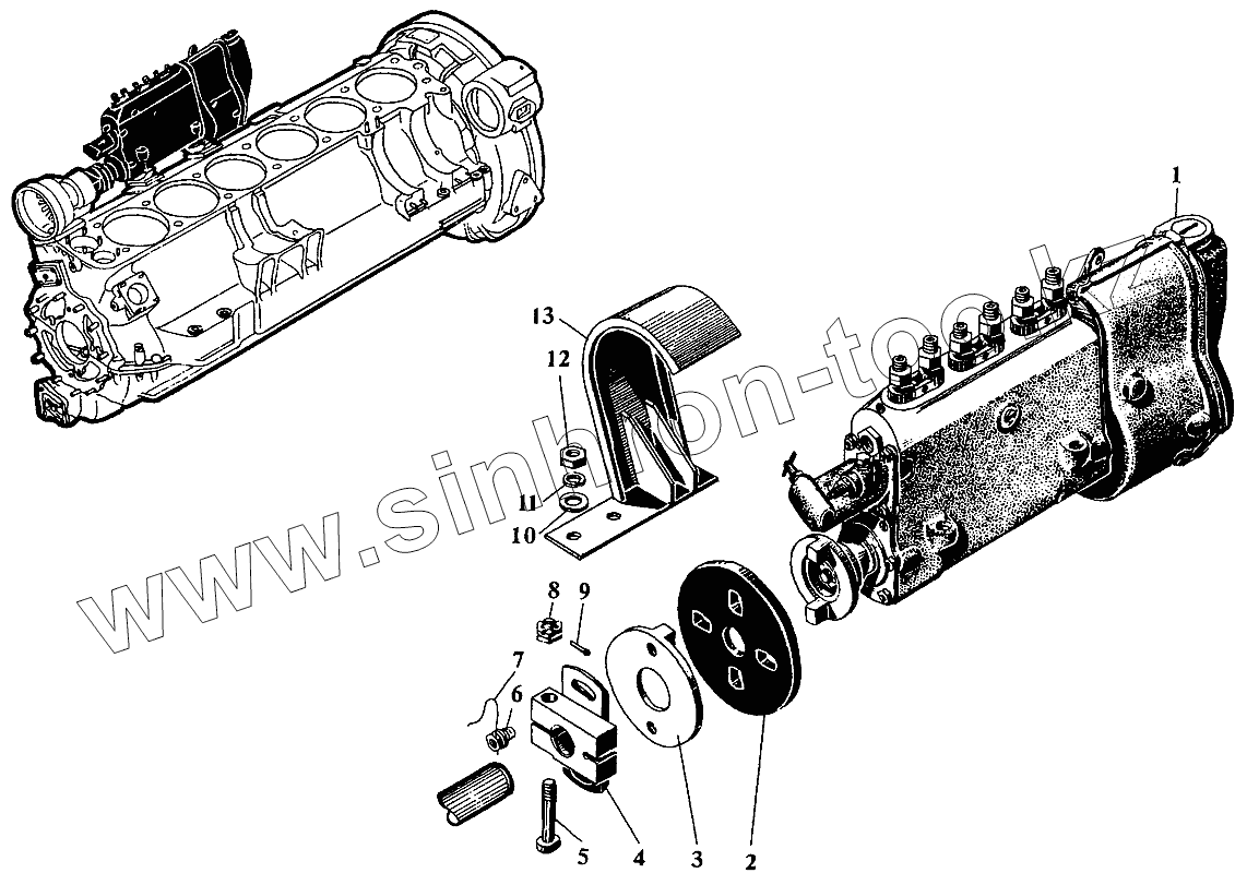 Каталог запасных частей к технике: Барнаултрансмаш Дизели Д6С2. Топливный насос и муфта привода