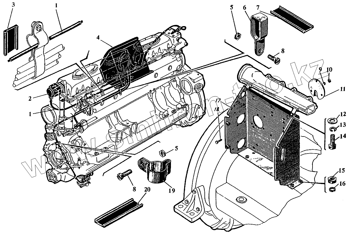 Каталог запасных частей к технике: Барнаултрансмаш Дизели Д6С2. Установка щитка управления дизелем