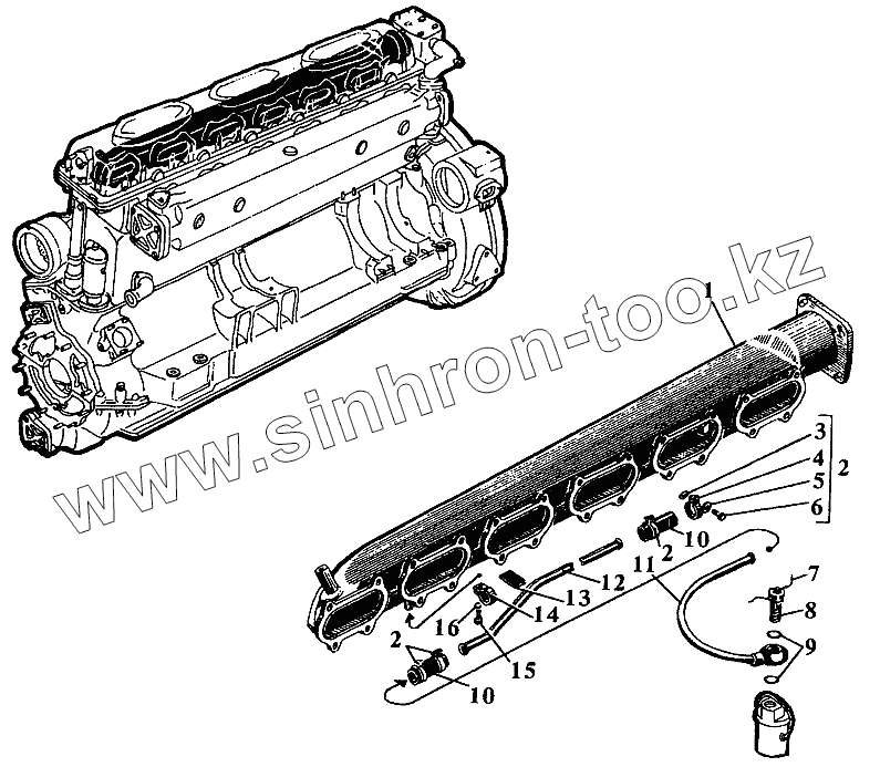 Каталог запасных частей к технике: Барнаултрансмаш Дизели Д6С2. Впускной коллектор