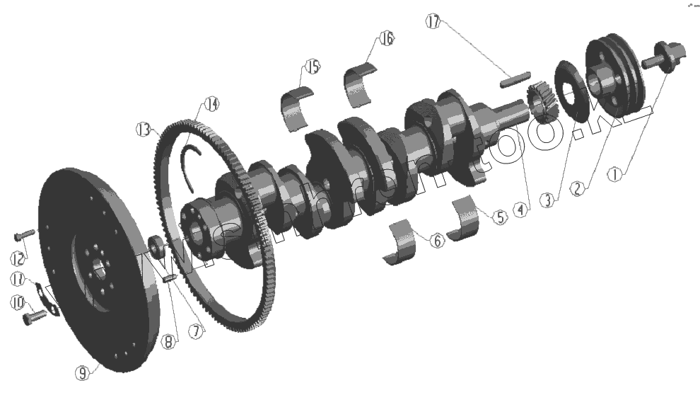 Каталог запасных частей к технике: BAW Двигатель BAW-1044 E2. Crankshaft and Flywheel Assembly