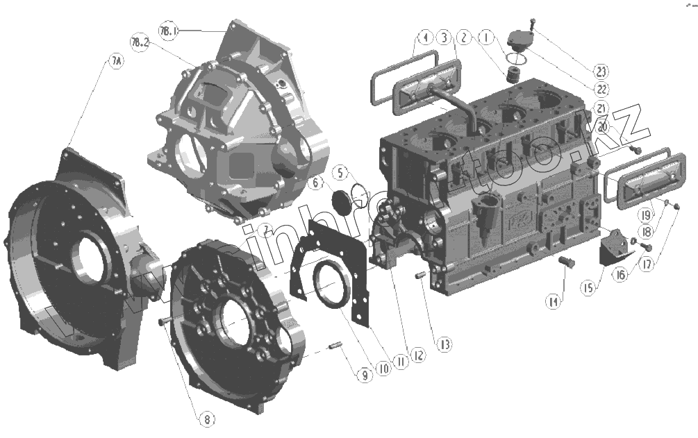 Каталог запасных частей к технике: BAW Двигатель BAW-1044 E2. Cylinder Block Assembly (II)